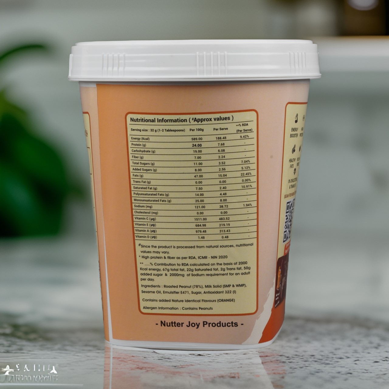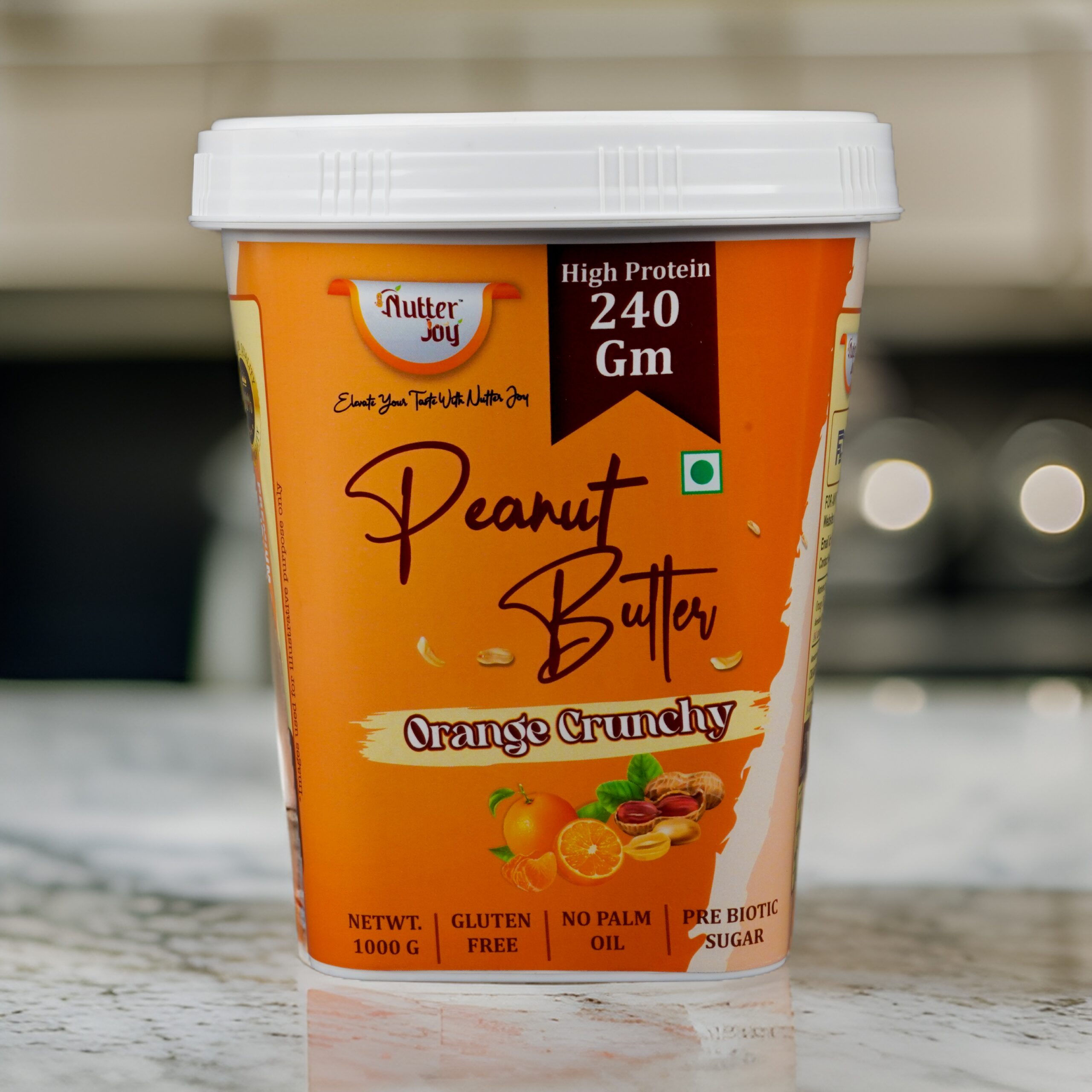 Nutter Joy Orange Crunchy Peanut Butter offers a unique taste adventure. The initial tangy sweetness of orange beautifully melds with the savory crunch of peanuts, creating a harmony of flavors that is both bold and refreshing.